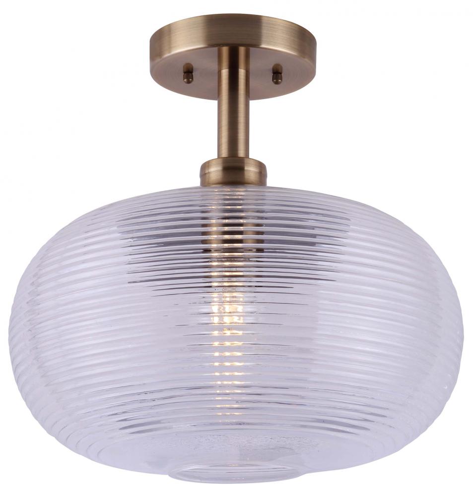 IVAH, ISF744B01GD, 1 Lt Semi-Flush, Clear Textured Glass, 60W Type A, 13.375inch W x 13.5inch H, Easy Connect Included