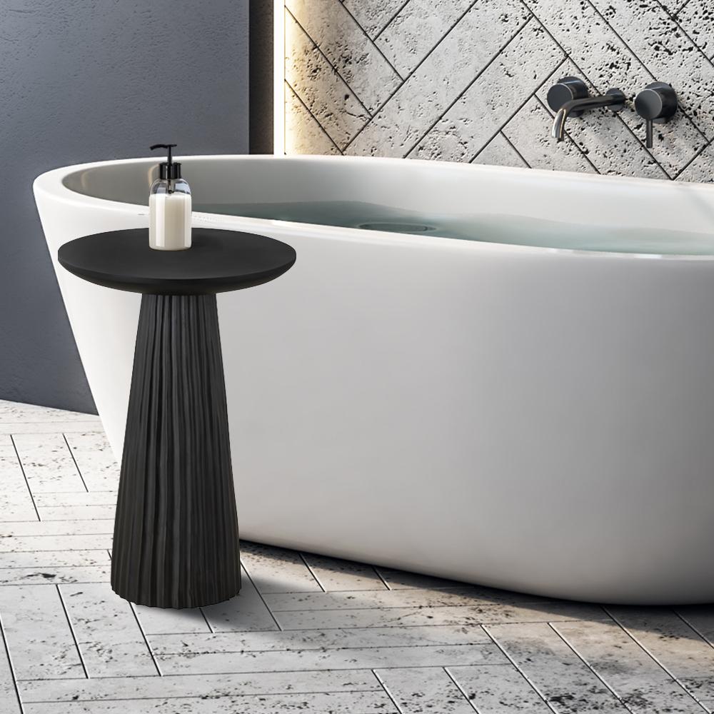Contemporary and Elegant Design: The JAI Black Finished Wood Side Table features a sleek and modern silhouette with a unique ribbed design, adding sophistication and texture to any room.