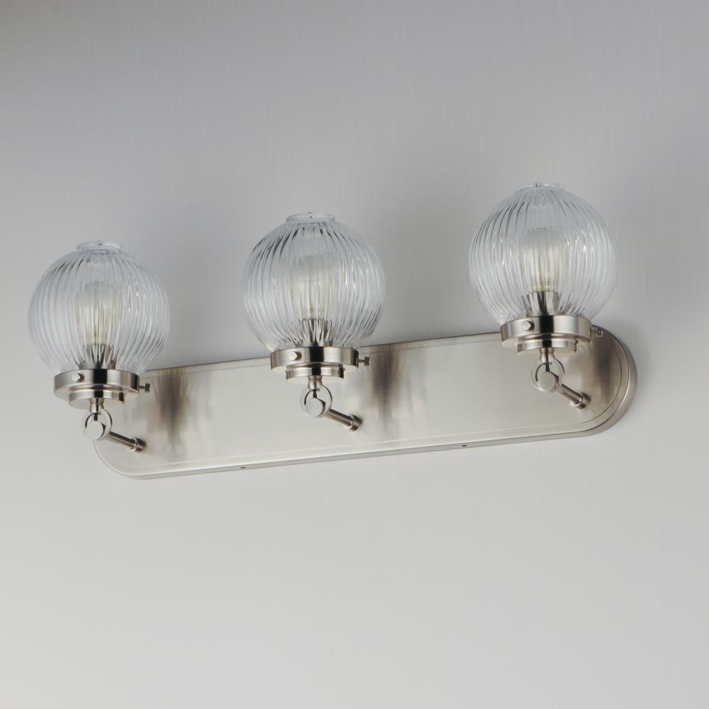 Nostalgic spherical glass volumes with a ribbed pattern and a dipped flat bottom, this collection offers a retro and eclectic choice for pendants and sconces. Available in Oil Rubbed Bronze, Satin Brass, and Satin Nickel, these fixtures provide elegant ill