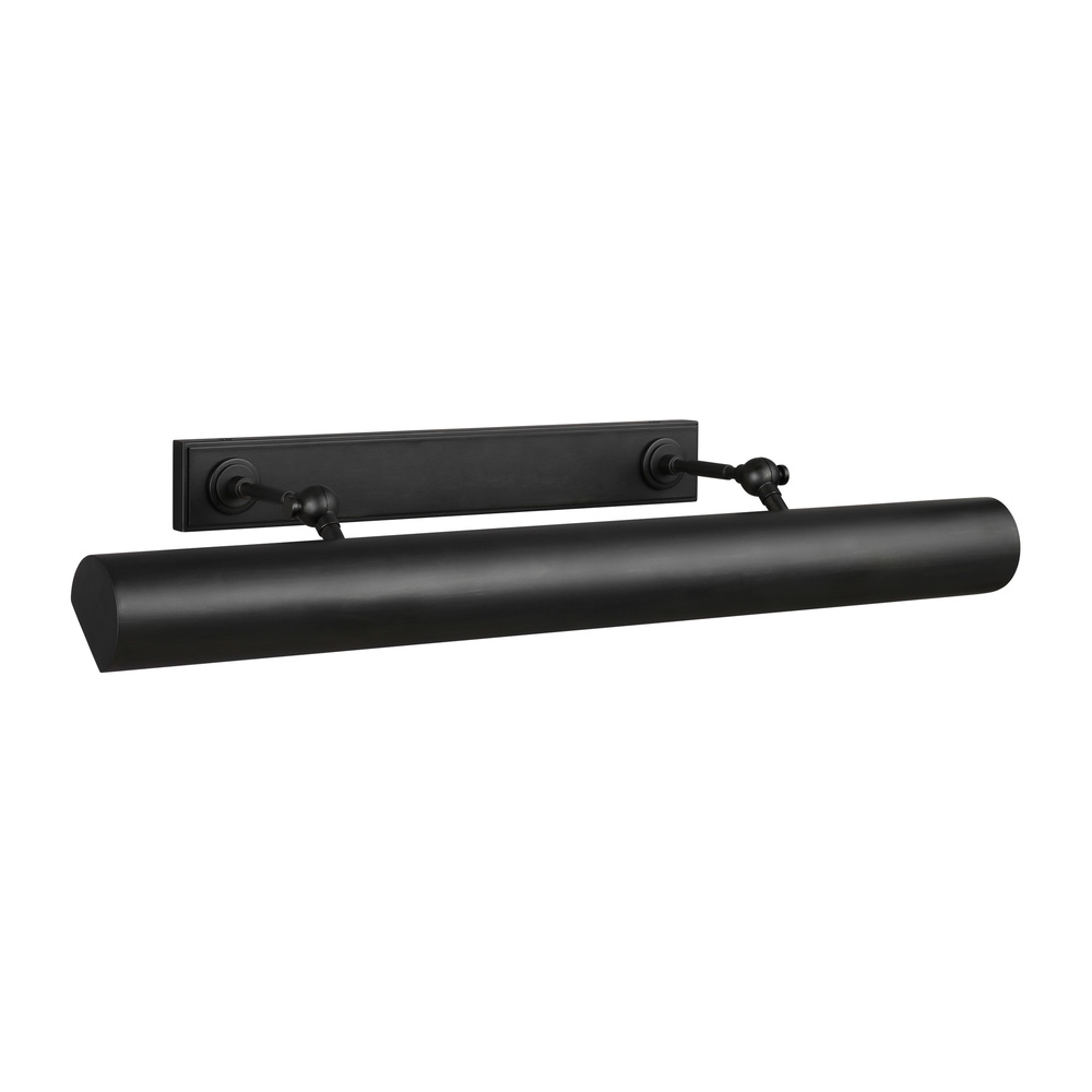 The Kenyon 30" Picture Light by Chapman & Myers were designed to be highly versatile in their application, at home in any interior. They have classic half round pharmacy shades which are mounted to a cylindrical metal stem with a differentiated stepped detailing. The picture lights have an architecturally inspired medallions where the arms mount to the rectangular backplate. Kenyon has a smooth clean metal shade that will bring the perfect light to your works of art. Available finishes include Aged Iron and Burnished Brass.