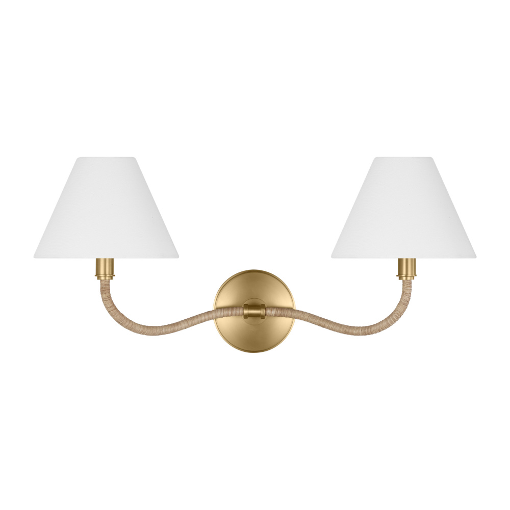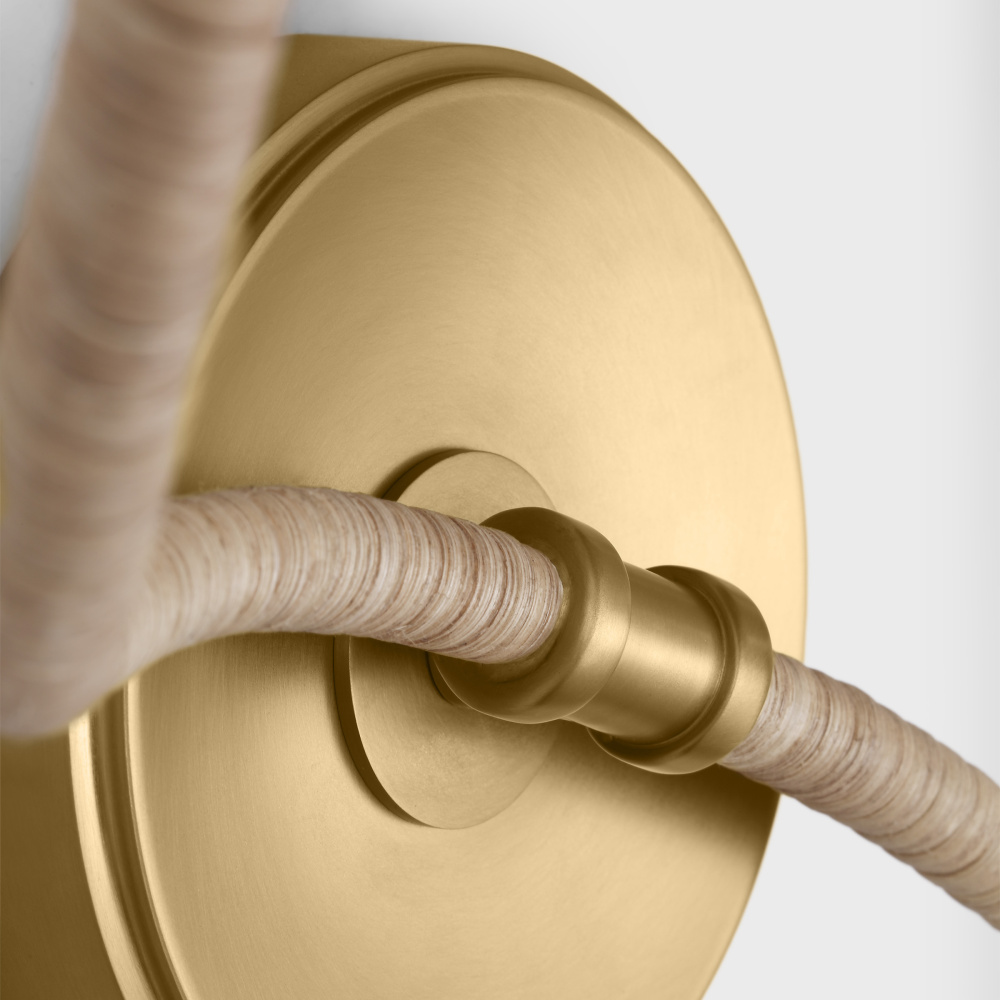 The curving arm of a vintage Royere sconce inspired the graceful form of each Laguna design. Along with most of Chapman & Myers's natural woven designs, the natural woven wrapped frame of each piece in this series is elevated by the metal details adorning them. Laguna is a unique blend of eclectic nautical and rustic vintage styles.