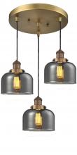 Bell - 3 Light 13" Multi-Pendant - Incandescent Bulb - Brushed Brass Finish - Matte White Shade