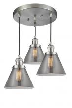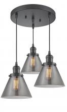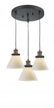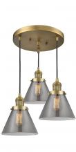Cone - 3 Light 13" Multi-Pendant - Incandescent Bulb - Brushed Brass Finish - Clear Shade