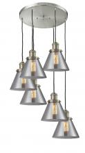 Cone - 6 Light 13" Multi-Pendant - Incandescent Bulb - Brushed Satin Nickel Finish - Clear Shade