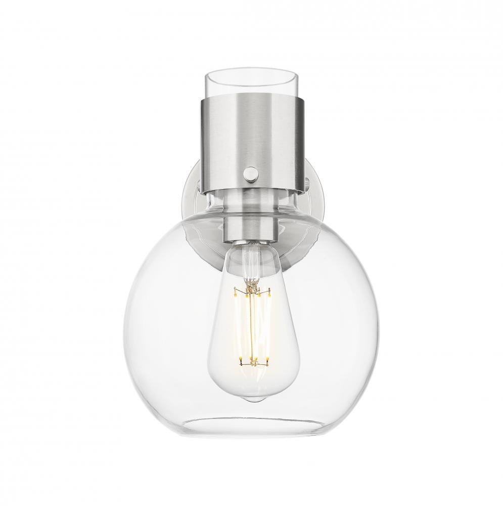 This collection is a modern update to the timeless Lawton design, offering a sleek glass holder collar and refined details. Available in cone, globe, or dome-shaped glass shades, the minimalist design is perfect for contemporary vanity lighting with its cl