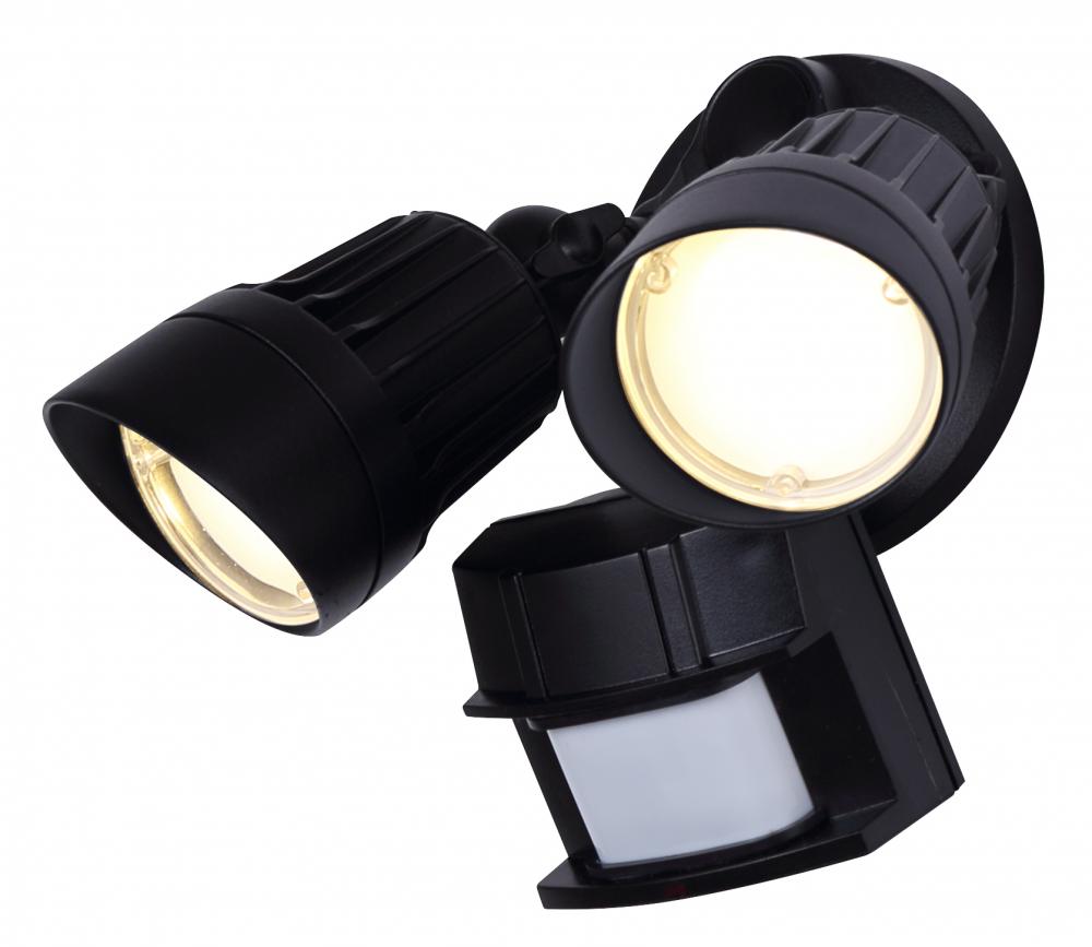 HO-01-02S-BK, LED Security 2 Heads Lights, 20W, 3000K, 1600 Lumens, 180 Degree Detection Zone, Up to 70 Feet, Dusk to Dawn with Motion Sensing, 9.3inch W x 6.1inch H x 4.2inch D