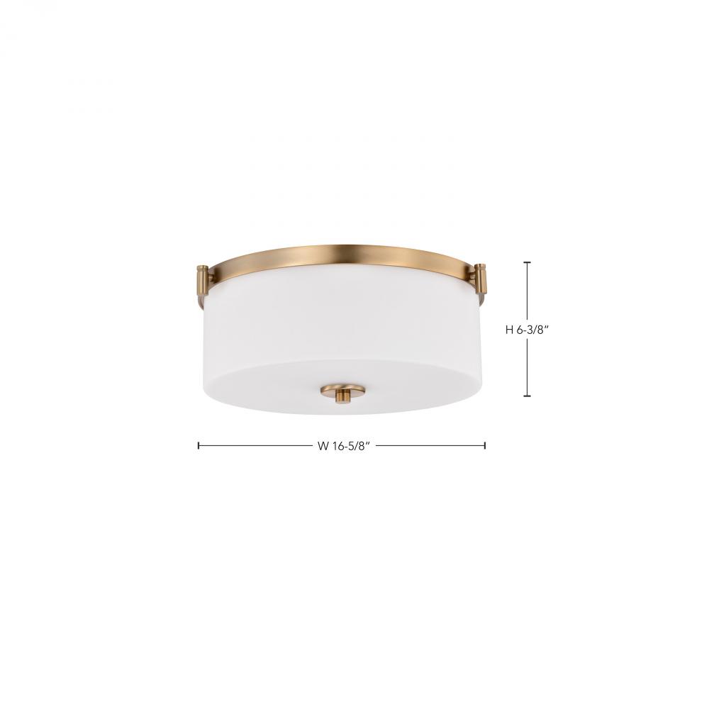 Liam; 3 Light Flush Mount; Burnished Brass; White Opal Glass