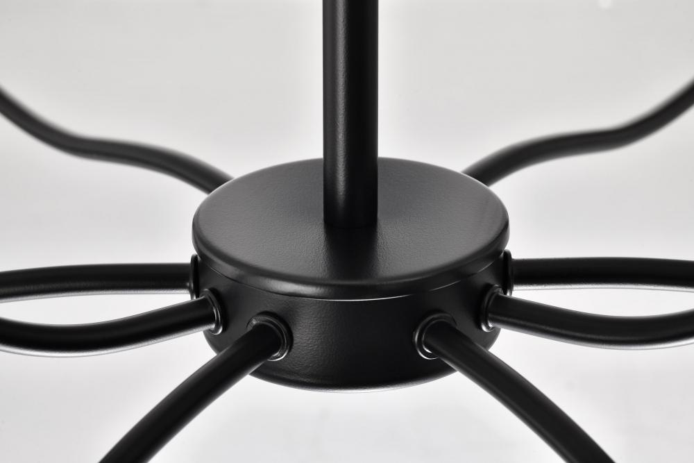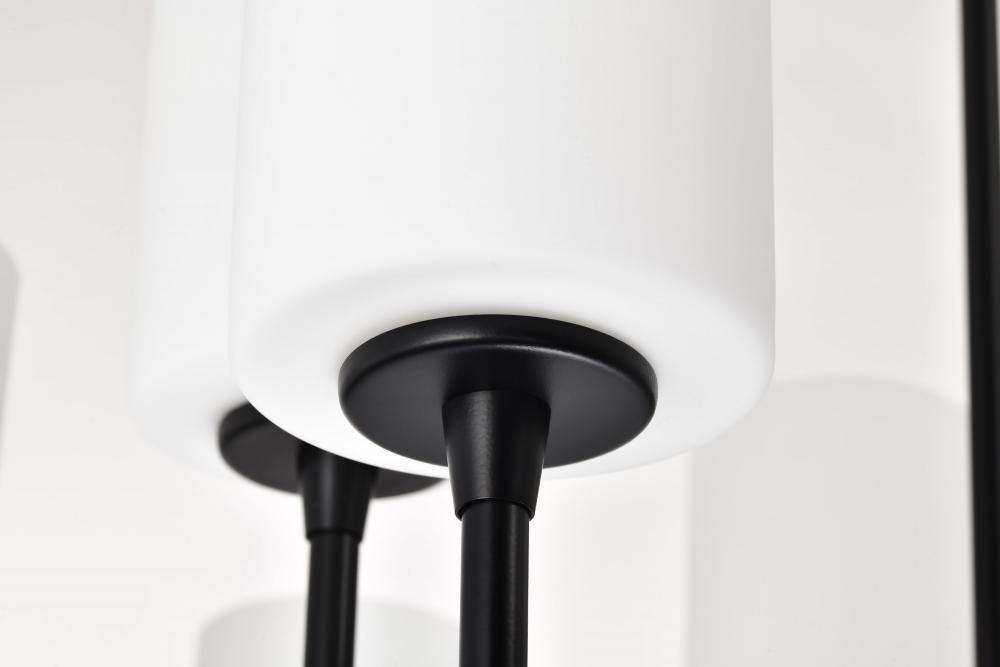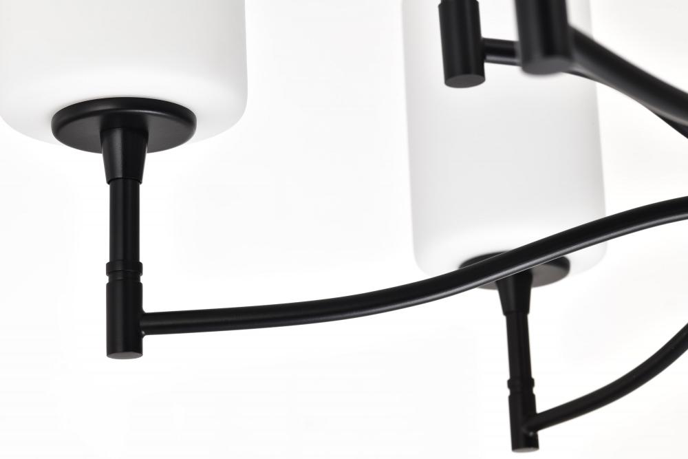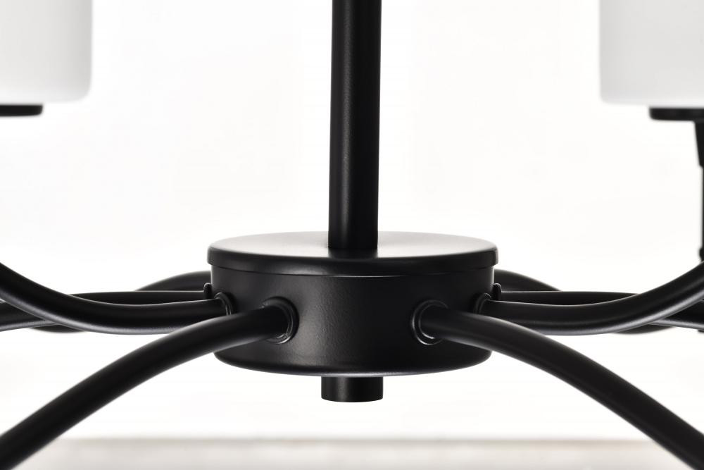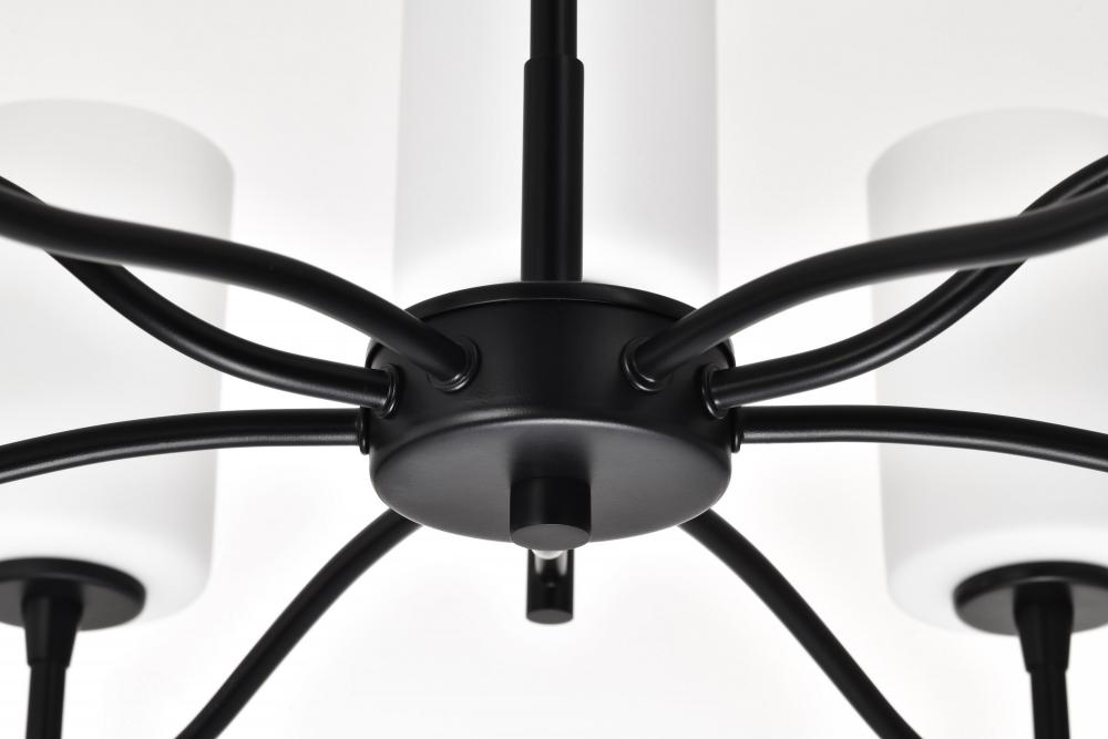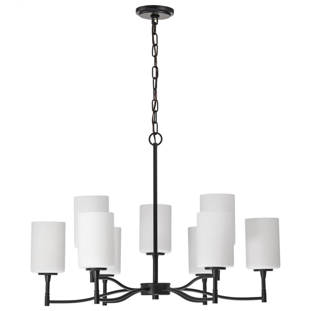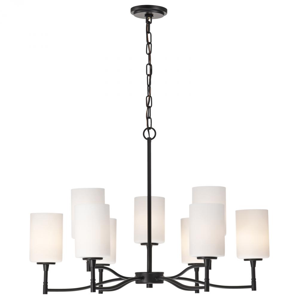 Liam; 9 Light Chandelier; Matte Black; White Opal Glass