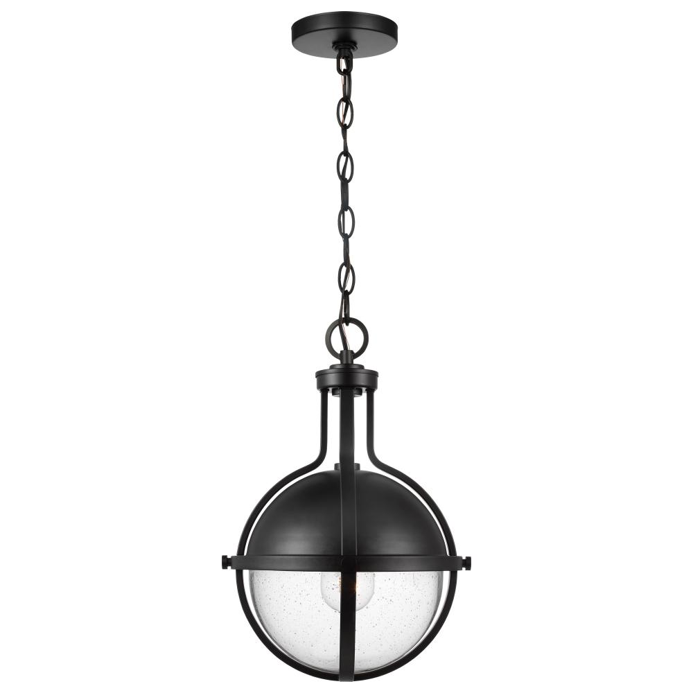 Lincoln; 1 Light Medium Pendant; Medium Base; 60 Watt; Matte Black Finish; Clear Seeded Glass