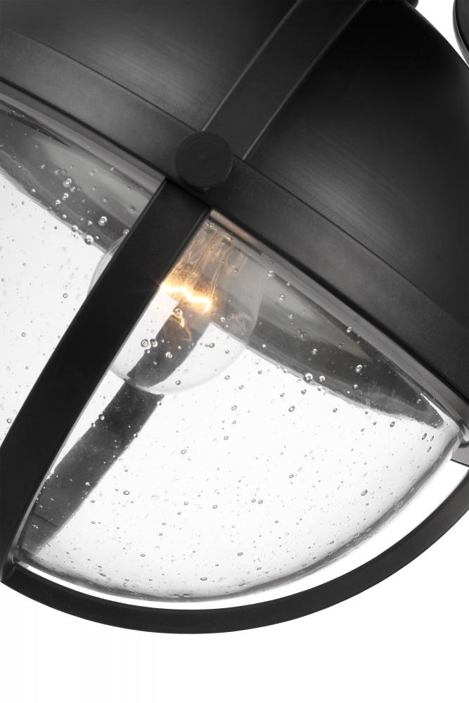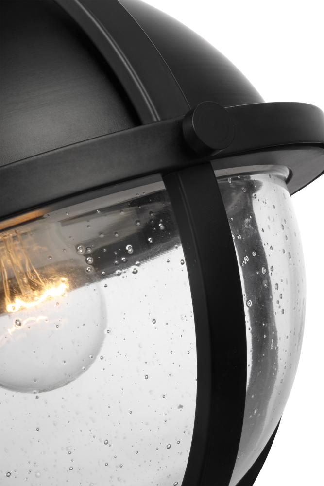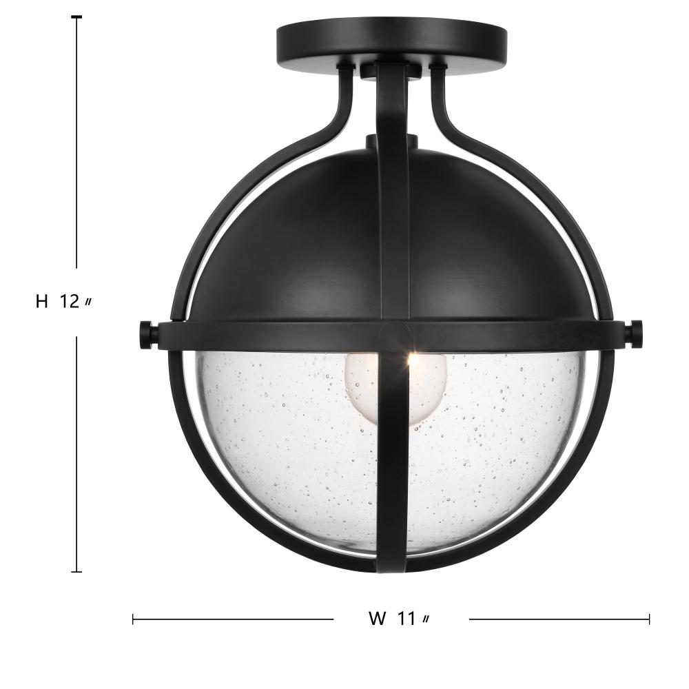 Lincoln; 1 Light Semi Flush Mount; Medium Base; 60 Watt; Matte Black Finish; Clear Seeded Glass