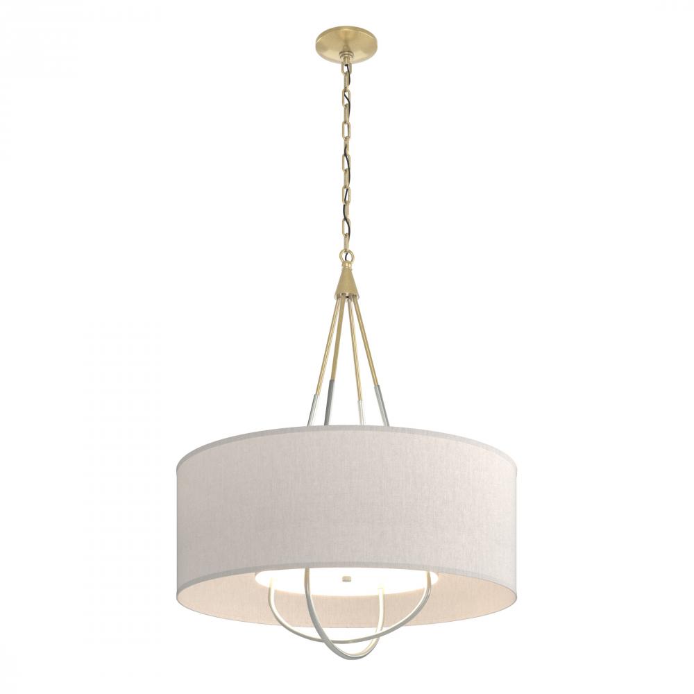 Refinement of materials and purity of line combine to make the Loop Pendant an elegant and versatile choice. Explore the many options this fixture offers—select a base finish for the canopy and chain, an accent finish for the intercrossed loops, and multiple outer shade color choices. A white inner shade gracefully diffuses the light while providing a tailored detail.