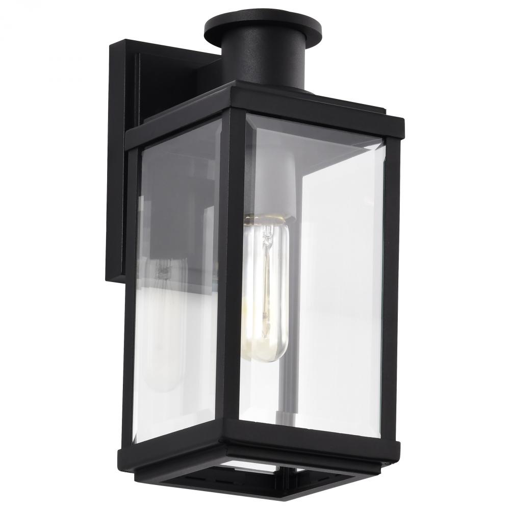 Luca; Small Outdoor Lantern; Sand Black Finish; Clear Beveled Glass