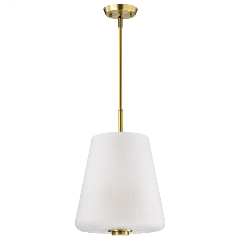 Lune; 3 Light Pendant; Vintage Brass Finish; Etched White Glass