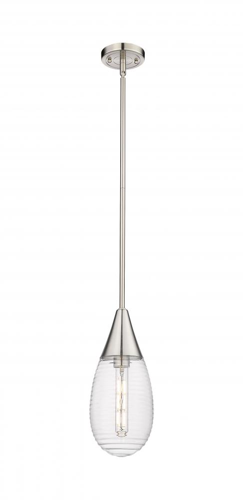 Malone - 1 Light - 6 inch - Satin Nickel - Striped Clear Shade - Pendant