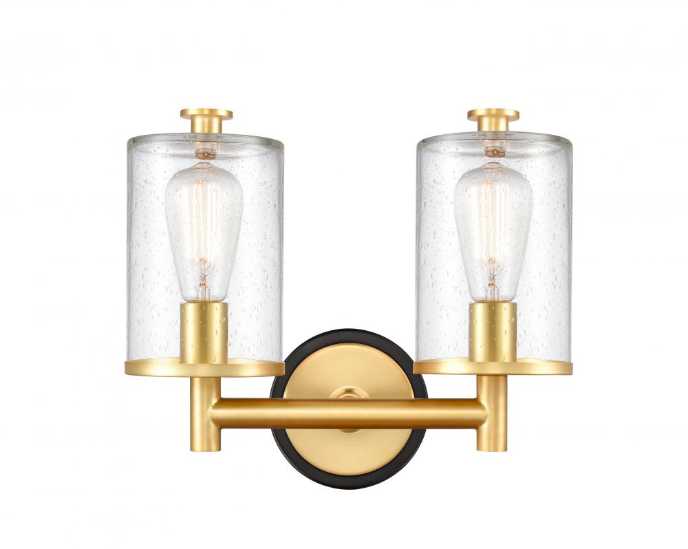 Marlowe - 2 Light - 14 inch - Black Satin Gold - Seedy Shade - Bath Vanity Light