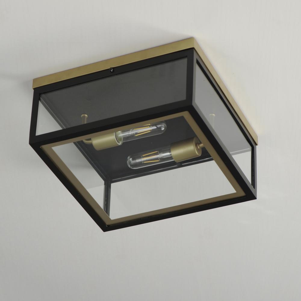 Two-tone frames of Black or White with internal Gold frames provides a neoclassical approach to the squared coach lantern. The sconces jut out from the wall on well-defined trusses that add a contemporary element. Delivering a classic design that suits mos
