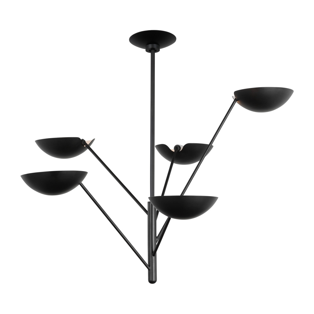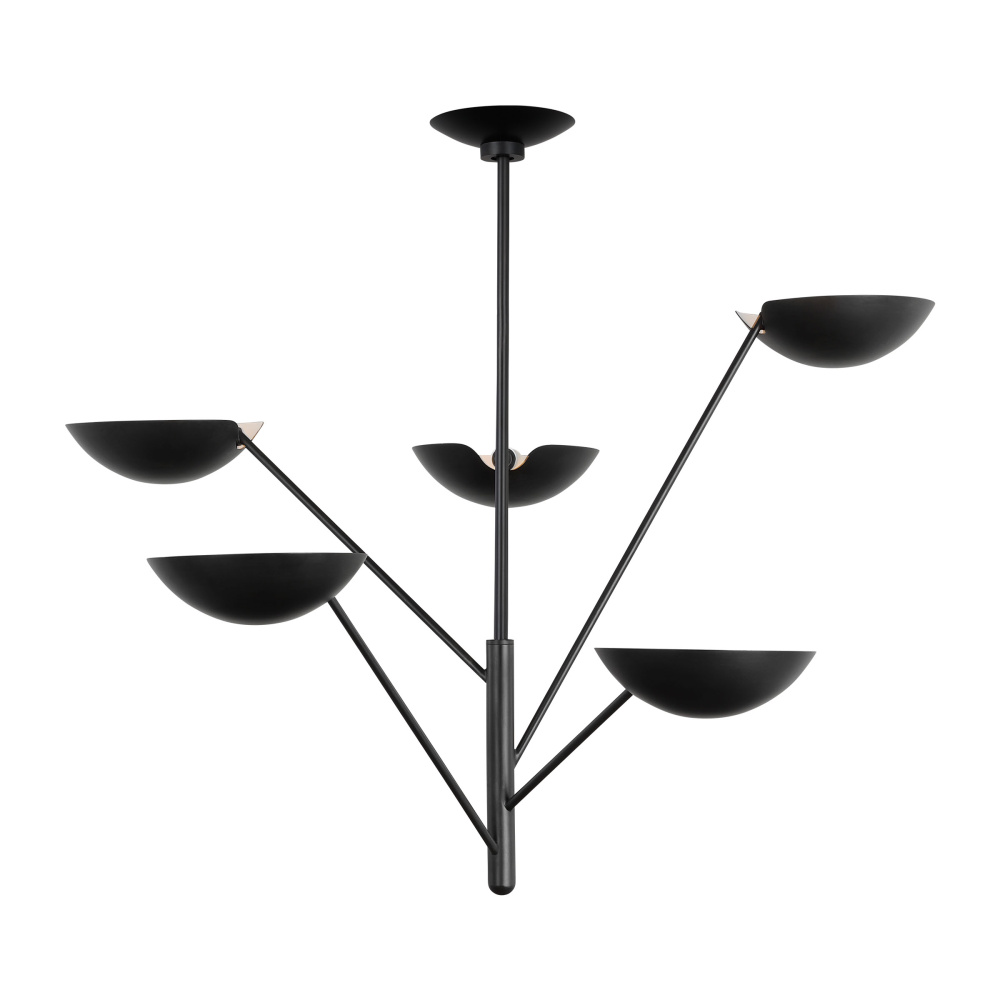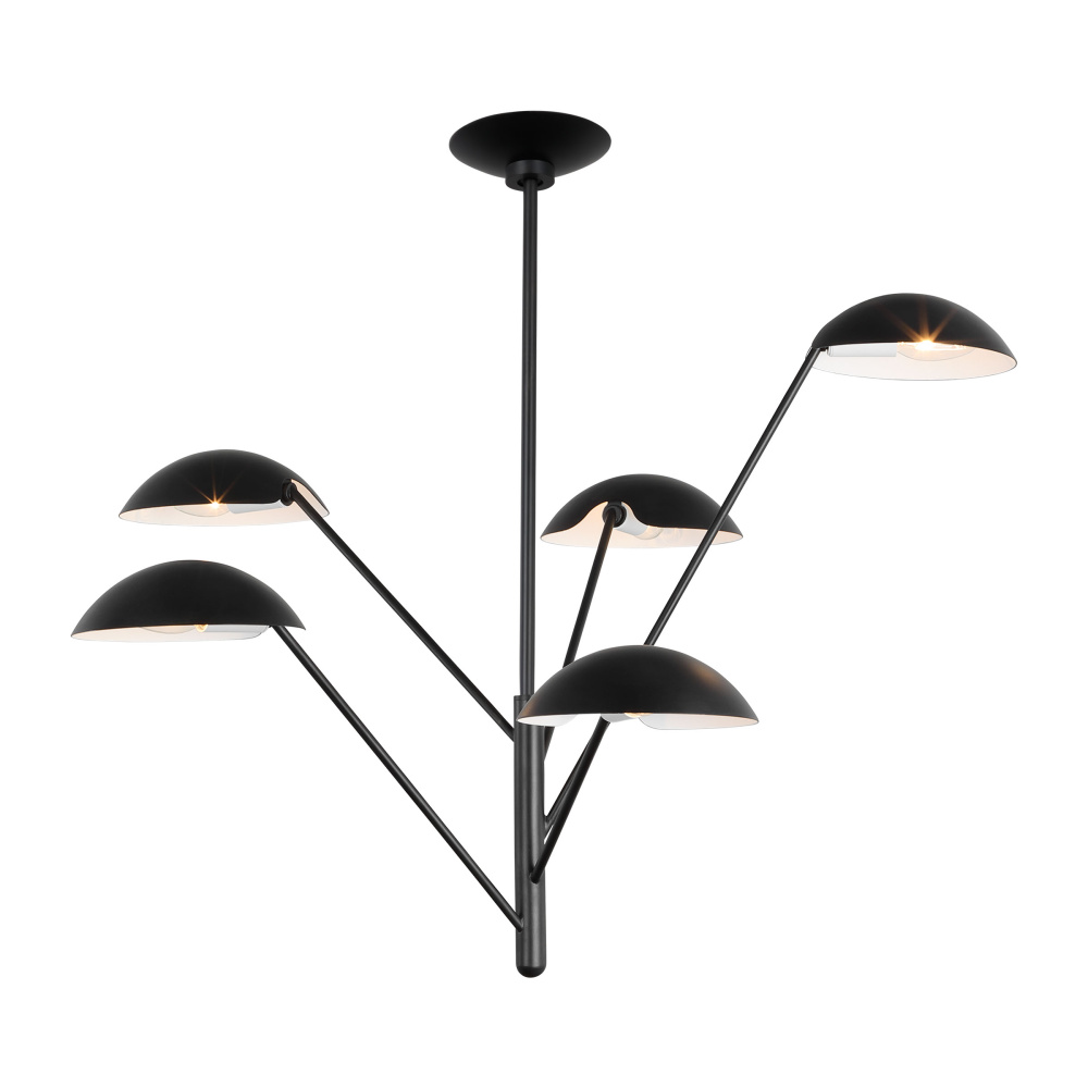 The Nevel series by Ellen DeGeneres was inspired by mid-century modern designs that add a touch of retro sophistication to any room. Nevel combines dramatic shapes and angles to create a theatrical feel within the room. The contemporary chandeliers feature pivoting arms and shades to direct light where you need it most. While the sconce can be mounted up or down for desired illumination. They are available in a modern aged iron finish for maximum impact.