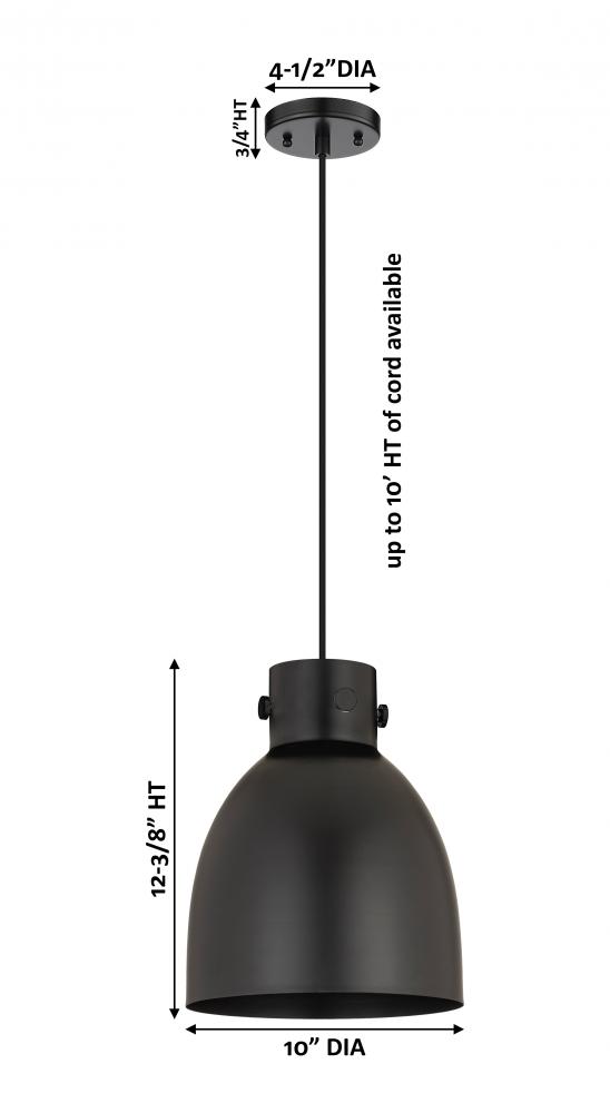 Newton Bell - 1 Light - 10 inch - Matte Black - Matte Black Shade - Cord hung - Pendant