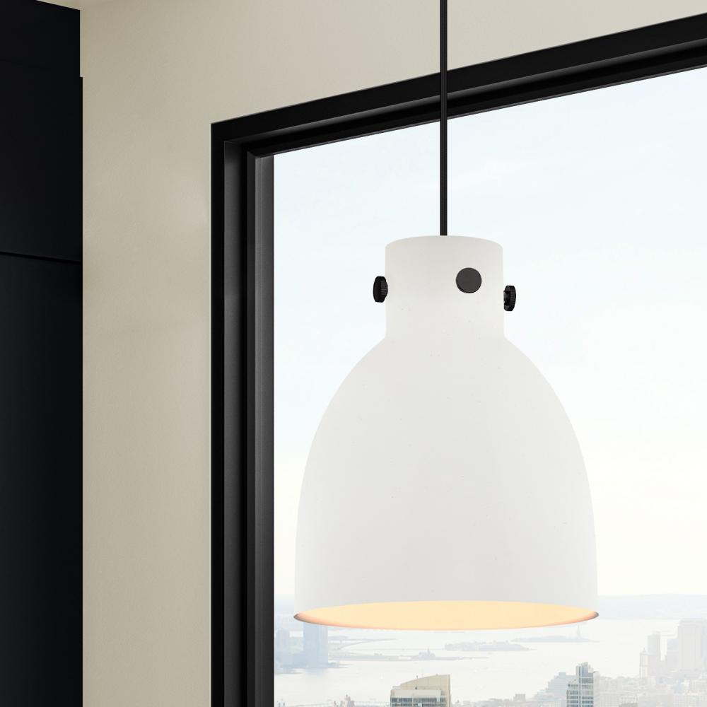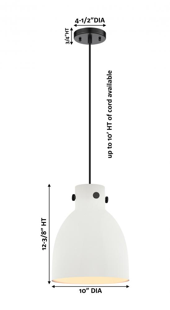 Newton Bell - 1 Light - 10 inch - Matte Black - Matte White Shade - Cord hung - Pendant
