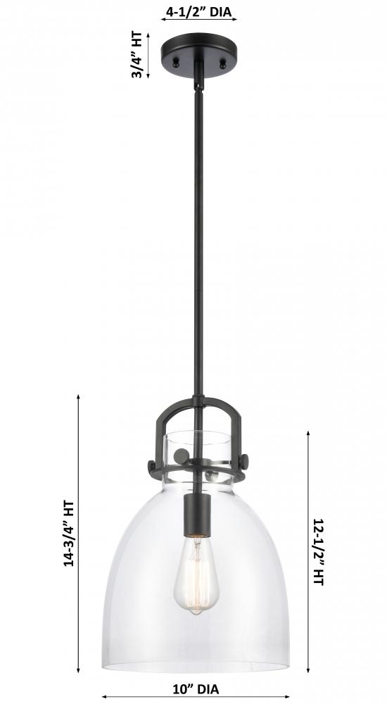 Newton Bell - 1 Light - 10 inch - Matte Black - Clear Shade - Mini Pendant