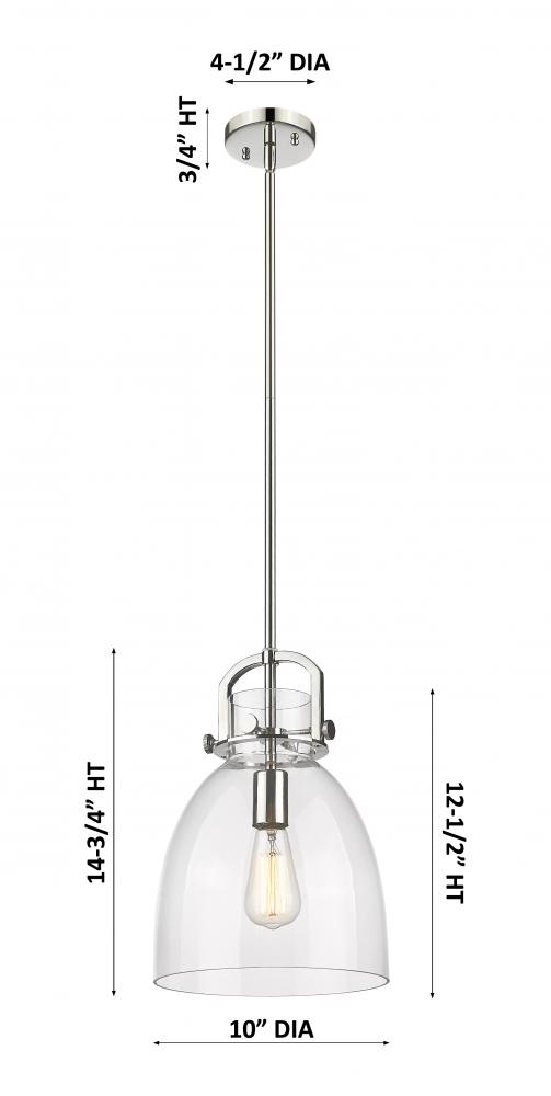 Newton Bell - 1 Light - 10 inch - Polished Nickel - Clear Shade - Mini Pendant