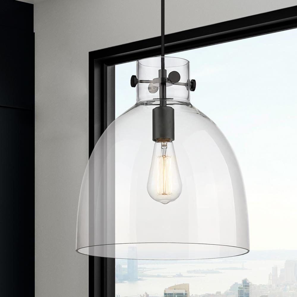 Newton Bell - 1 Light - 12 inch - Matte Black - Clear Shade - Cord hung - Pendant