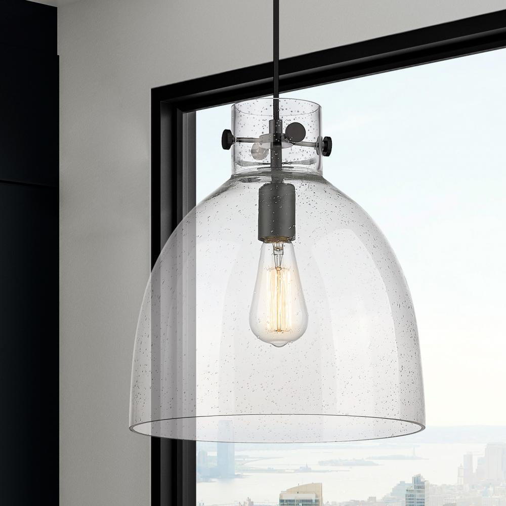 Newton Bell - 1 Light - 12 inch - Matte Black - Seedy Shade - Cord hung - Pendant