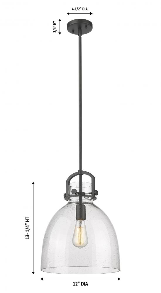 Newton Bell - 1 Light - 12 inch - Matte Black - Seedy Shade - Mini Pendant