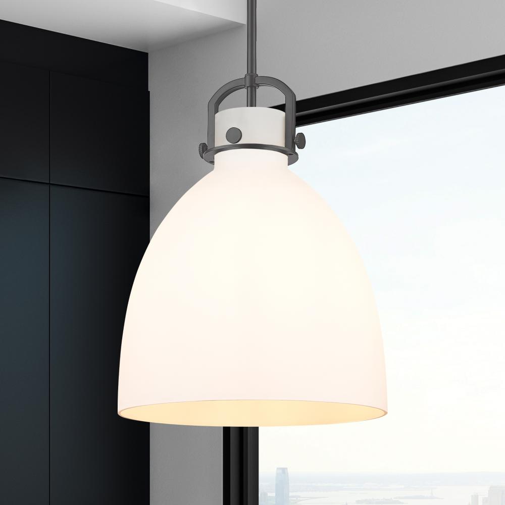 Newton Bell - 1 Light - 14 inch - Matte Black - White Shade - Pendant