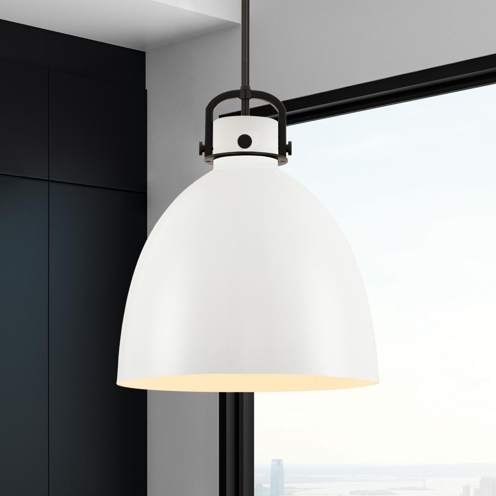 Newton Bell - 1 Light - 14 inch - Matte Black - Matte White Shade - Pendant