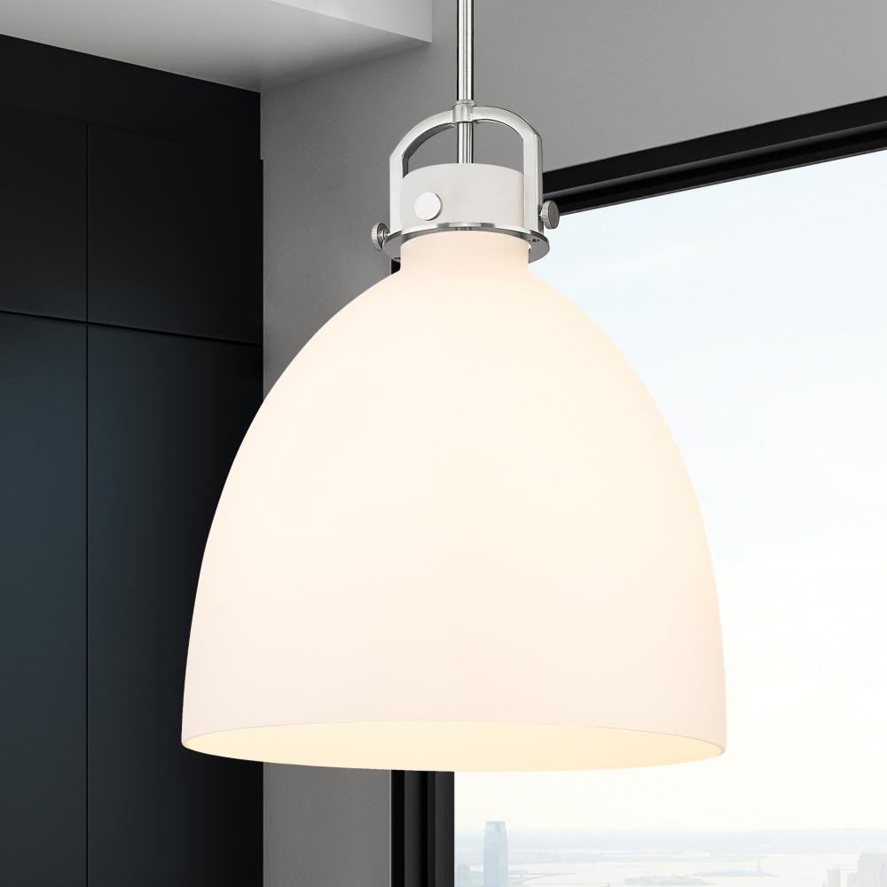 Newton Bell - 1 Light - 16 inch - Satin Nickel - White Shade - Pendant