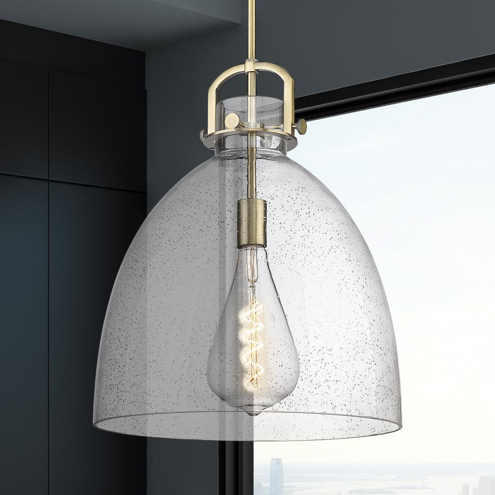 Newton Bell - 1 Light - 18 inch - Brushed Brass - Seedy Shade - Pendant