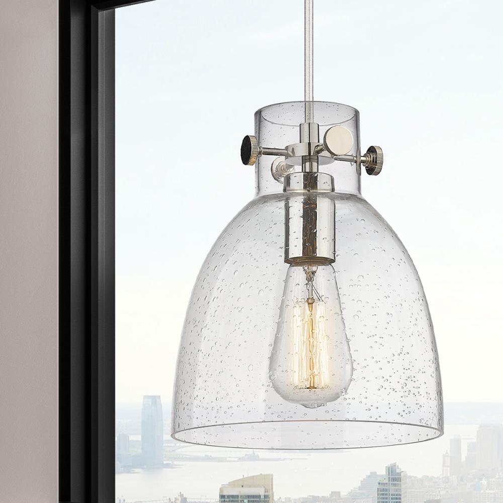 Newton Bell - 1 Light - 8 inch - Polished Nickel - Seedy Shade - Cord hung - Pendant