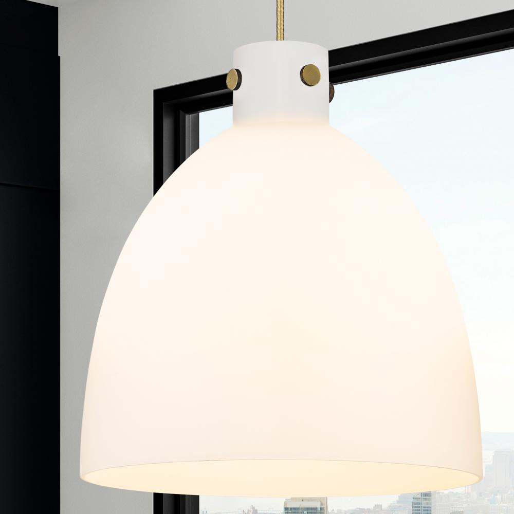 Newton Bell - 3 Light - 16 inch - Brushed Brass - White Shade - Cord hung - Pendant