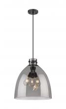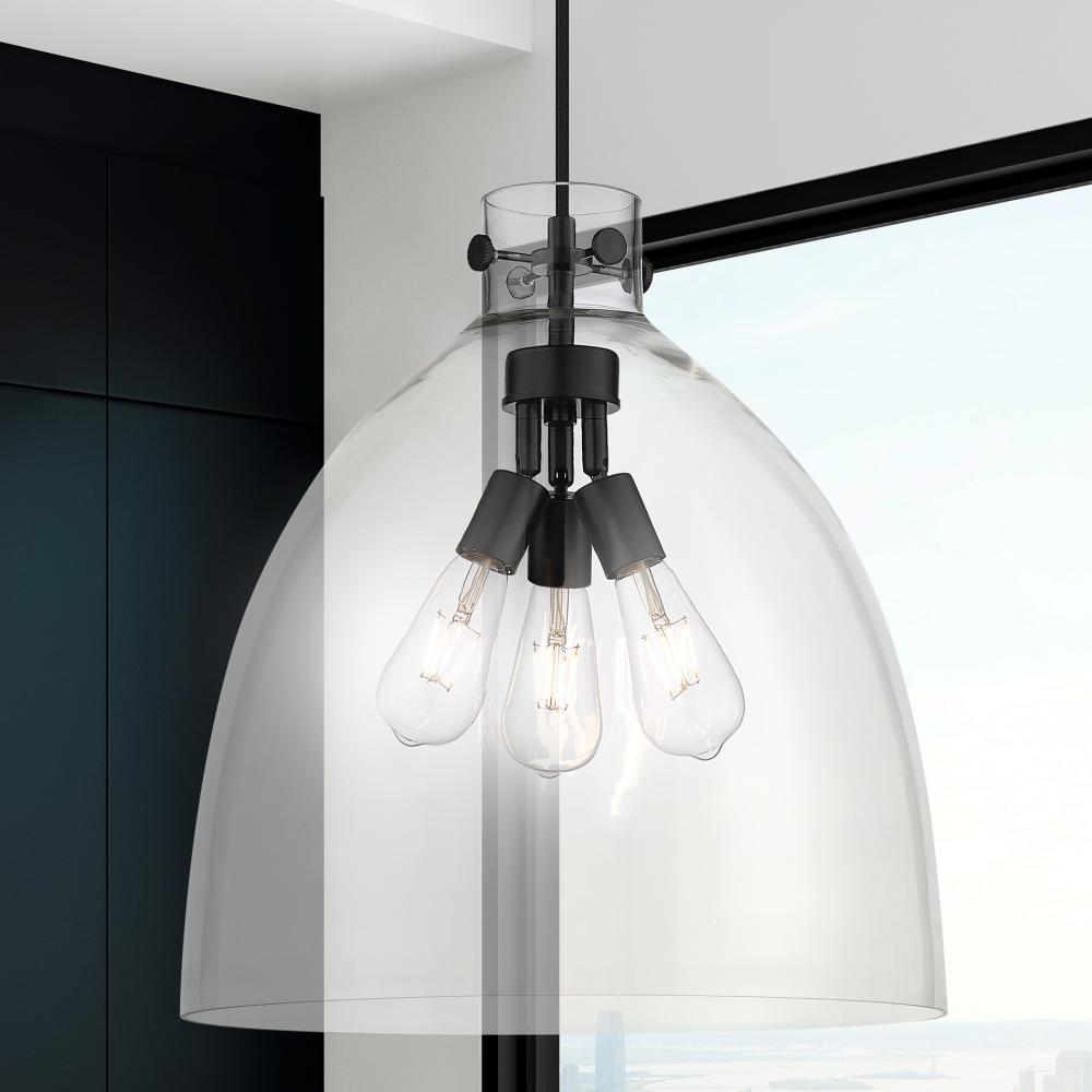 Newton Bell - 3 Light - 18 inch - Matte Black - Clear Shade - Cord hung - Pendant
