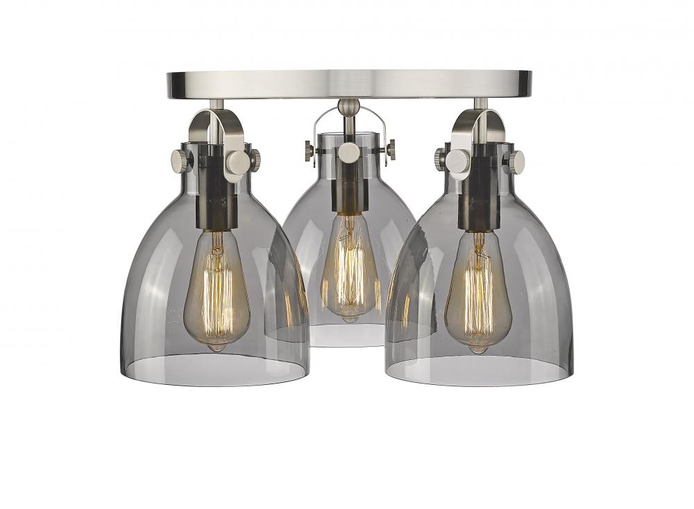 Newton Bell - 3 Light - 18 inch - Satin Nickel - Light Smoke Shade - Semi-Flush Mount