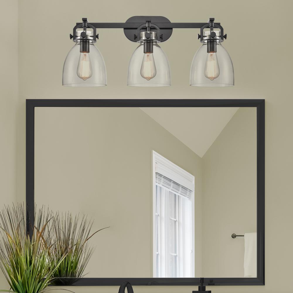 Newton Bell - 3 Light - 27 inch - Matte Black - Clear Shade - Bath Vanity Light