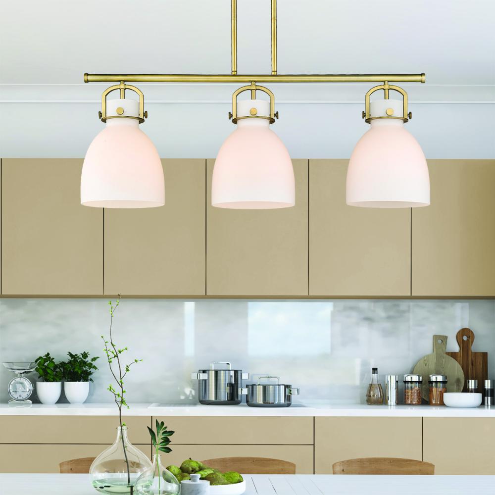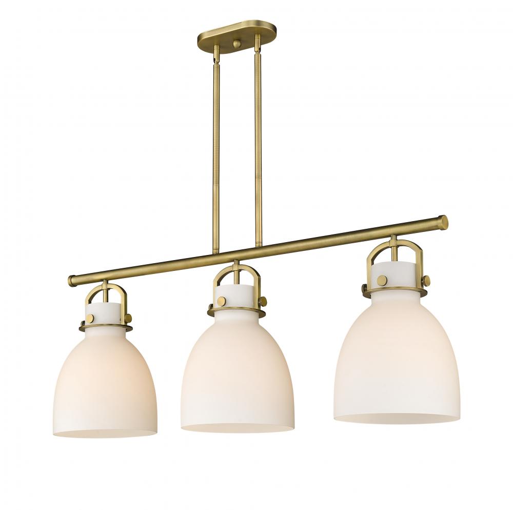 Newton Bell - 3 Light - 42 inch - Brushed Brass - White Shade - Island Light