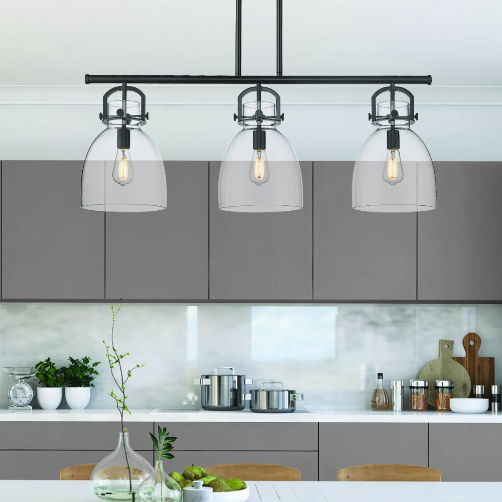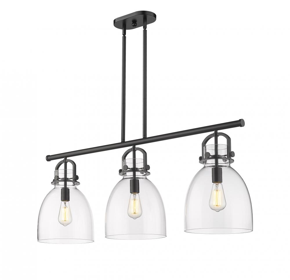 Newton Bell - 3 Light - 42 inch - Matte Black - Clear Shade - Island Light