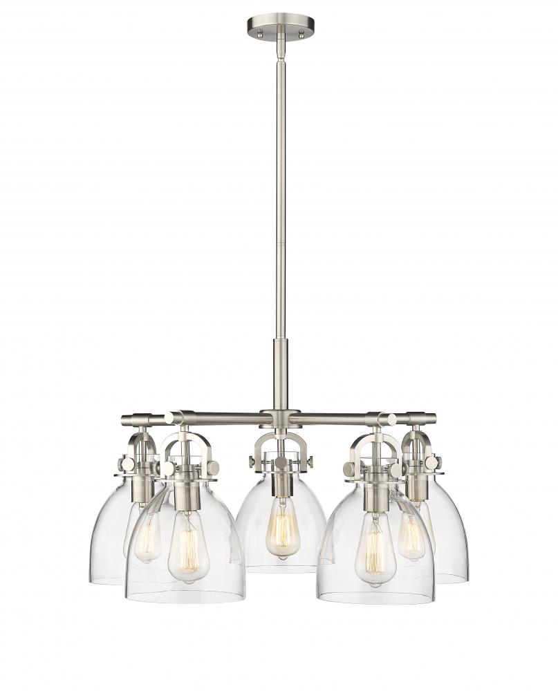 Newton Bell - 5 Light - 26 inch - Satin Nickel - Clear Shade - Chandelier