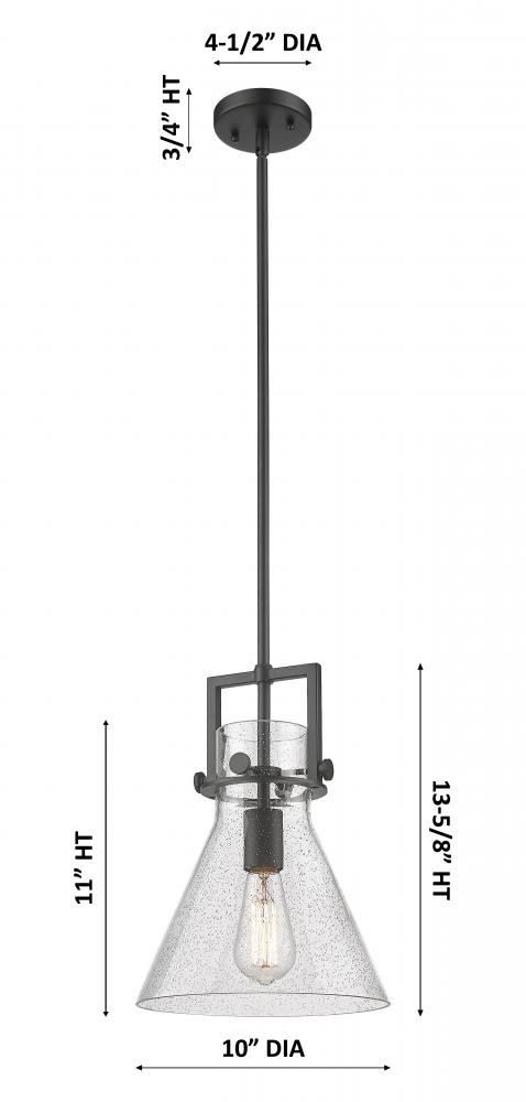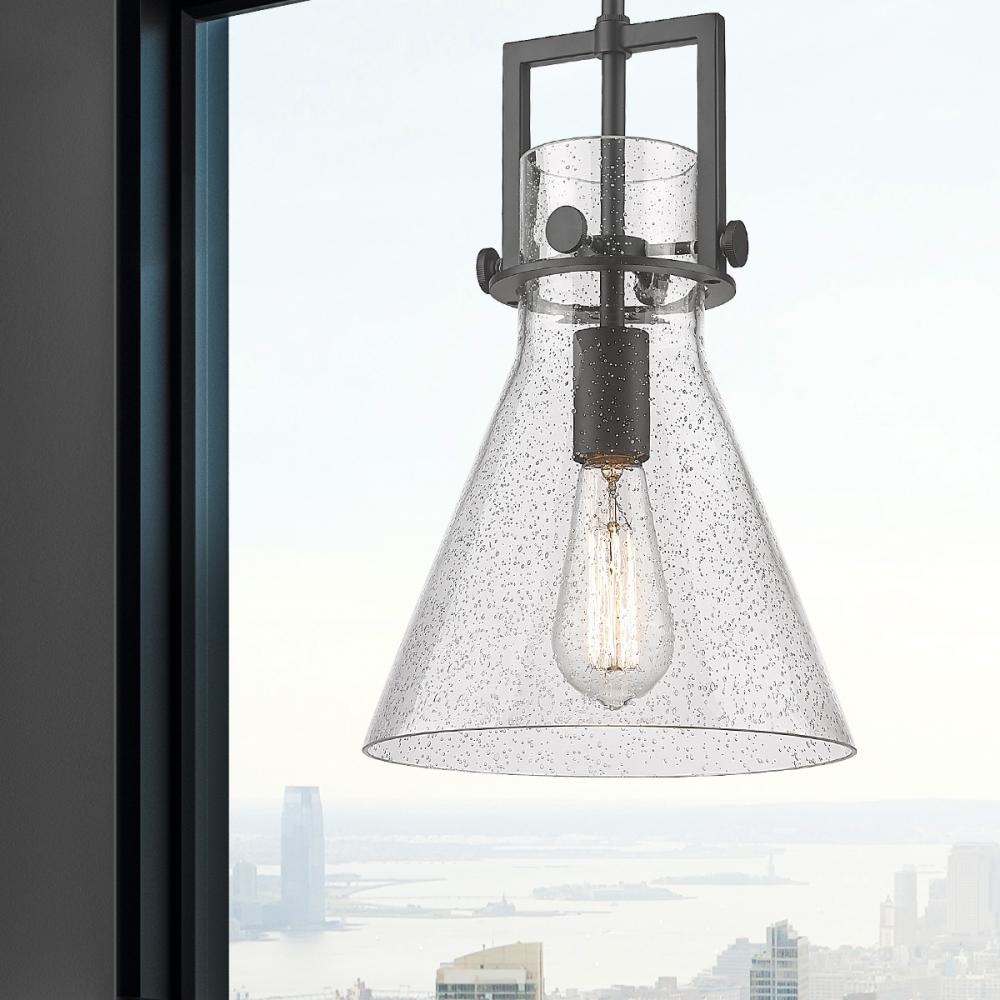 Newton Cone - 1 Light - 10 inch - Matte Black - Seedy Shade - Stem Hung - Mini Pendant