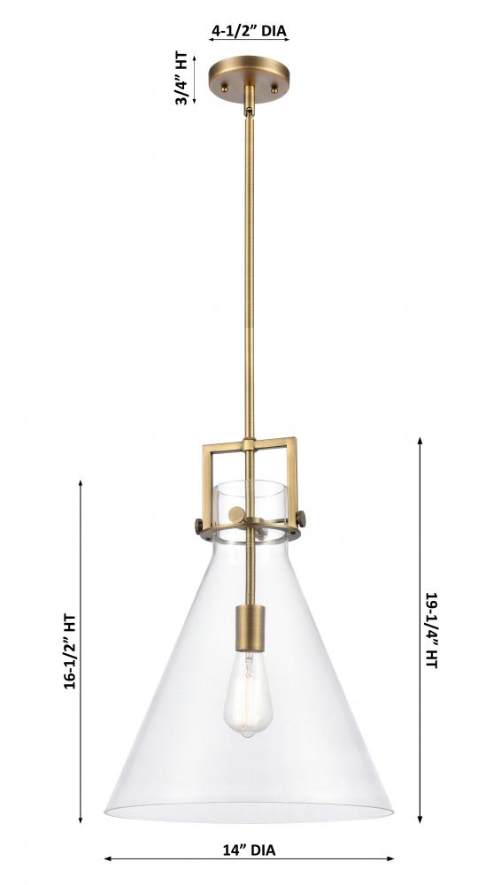 Newton Cone - 1 Light - 14 inch - Brushed Brass - Clear Shade - Pendant