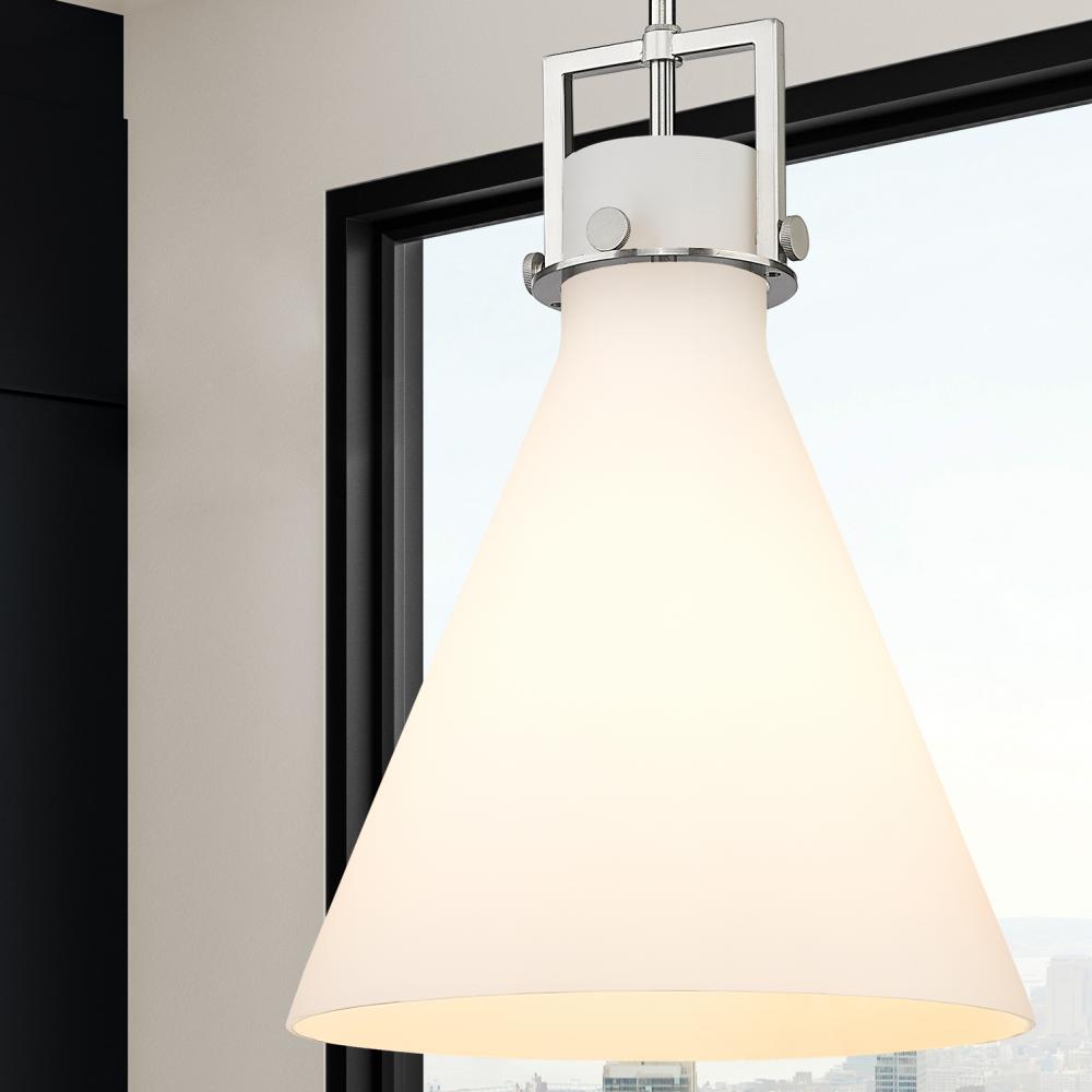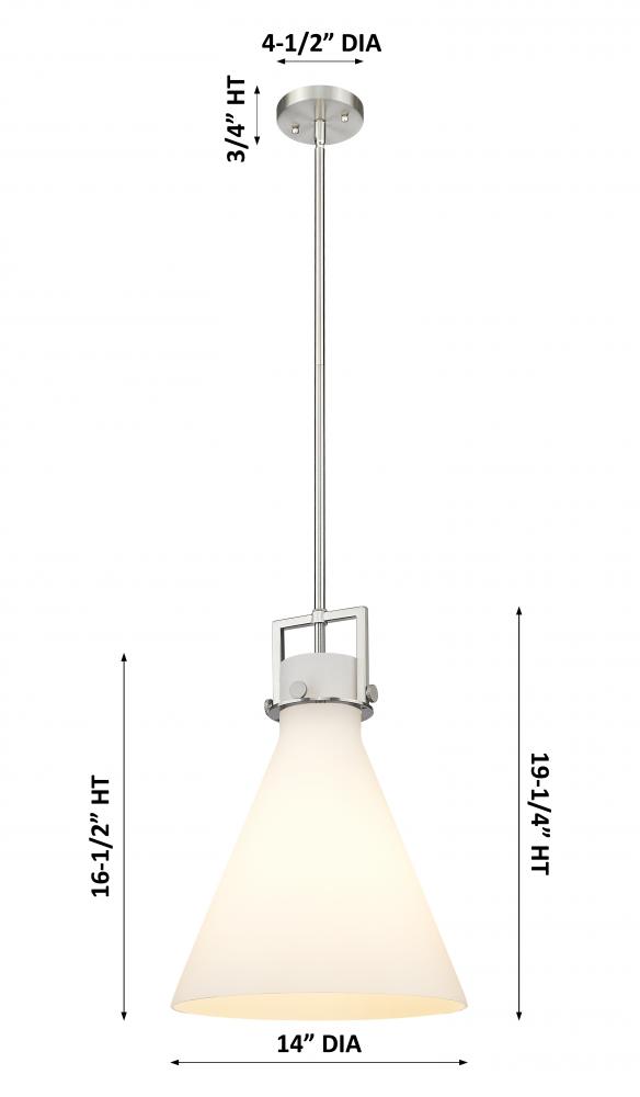 Newton Cone - 1 Light - 14 inch - Brushed Satin Nickel - White Shade - Stem hung - Pendant