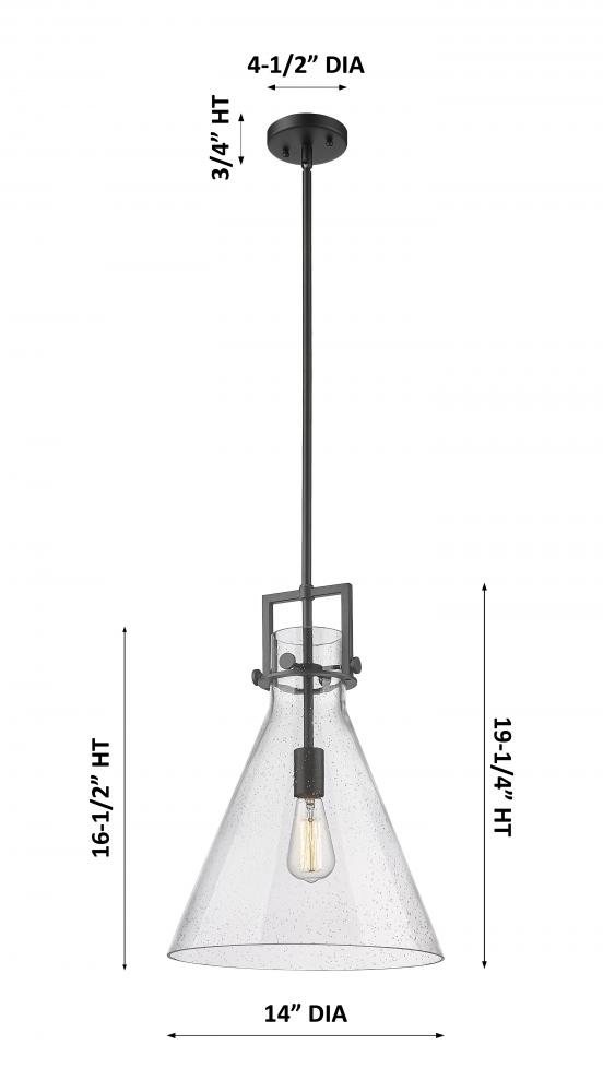 Newton Cone - 1 Light - 14 inch - Matte Black - Seedy Shade - Stem hung - Pendant