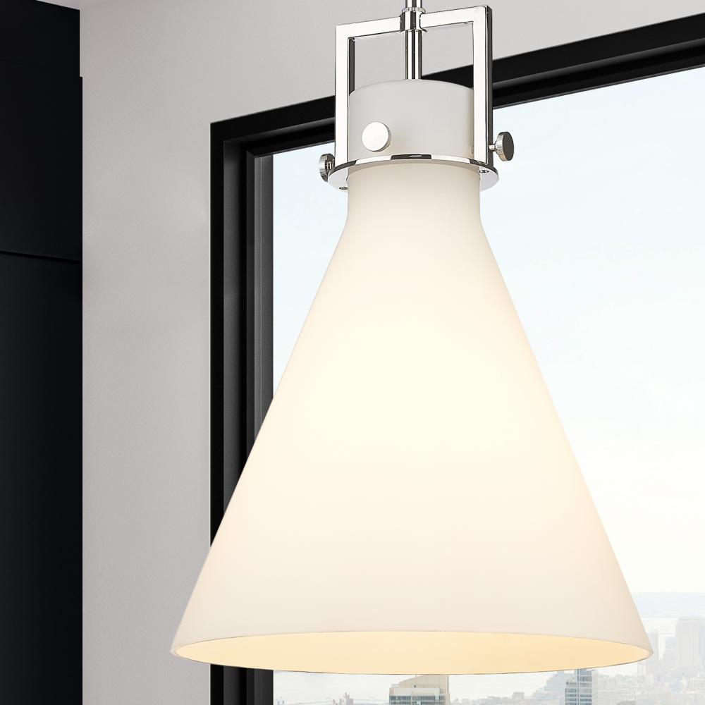 Newton Cone - 1 Light - 14 inch - Polished Nickel - White Shade - Stem hung - Pendant