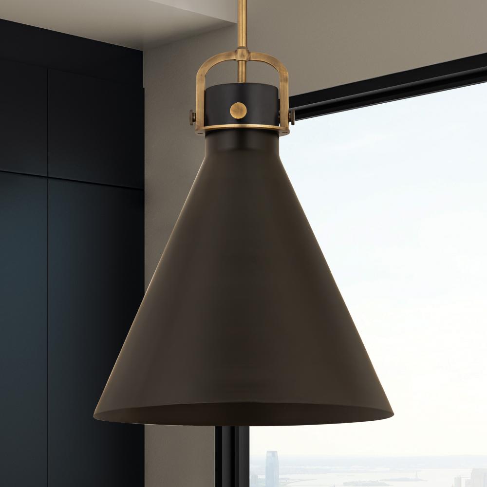Newton Cone - 1 Light - 16 inch - Brushed Brass - Matte Black Shade - Pendant