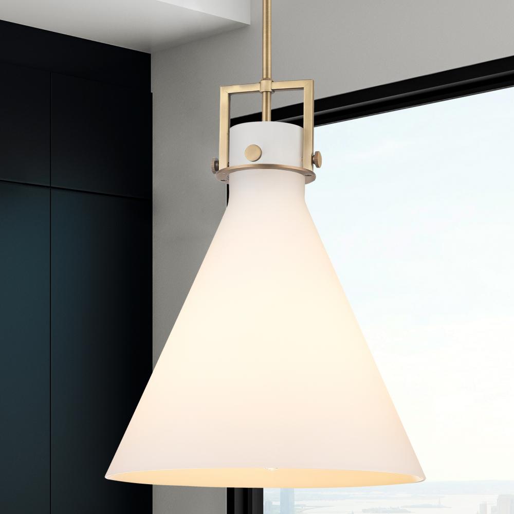Newton Cone - 1 Light - 16 inch - Brushed Brass - White Shade - Stem hung - Pendant