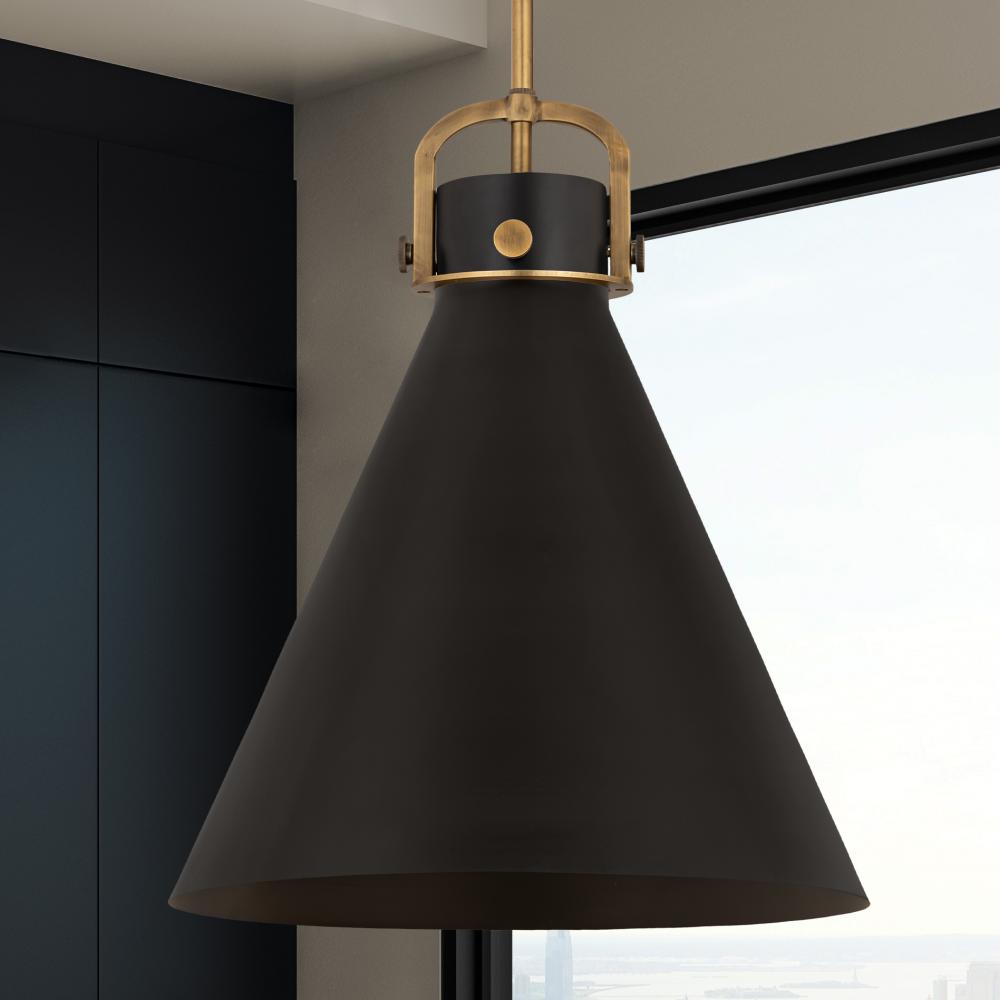 Newton Cone - 1 Light - 18 inch - Brushed Brass - Matte Black Shade - Pendant