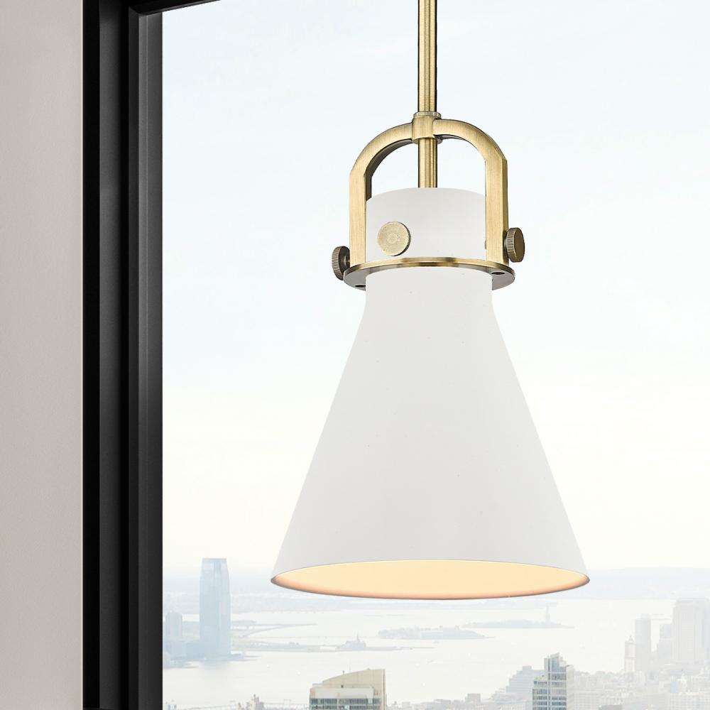 Newton Cone - 1 Light - 8 inch - Brushed Brass - Matte White Shade - Mini Pendant