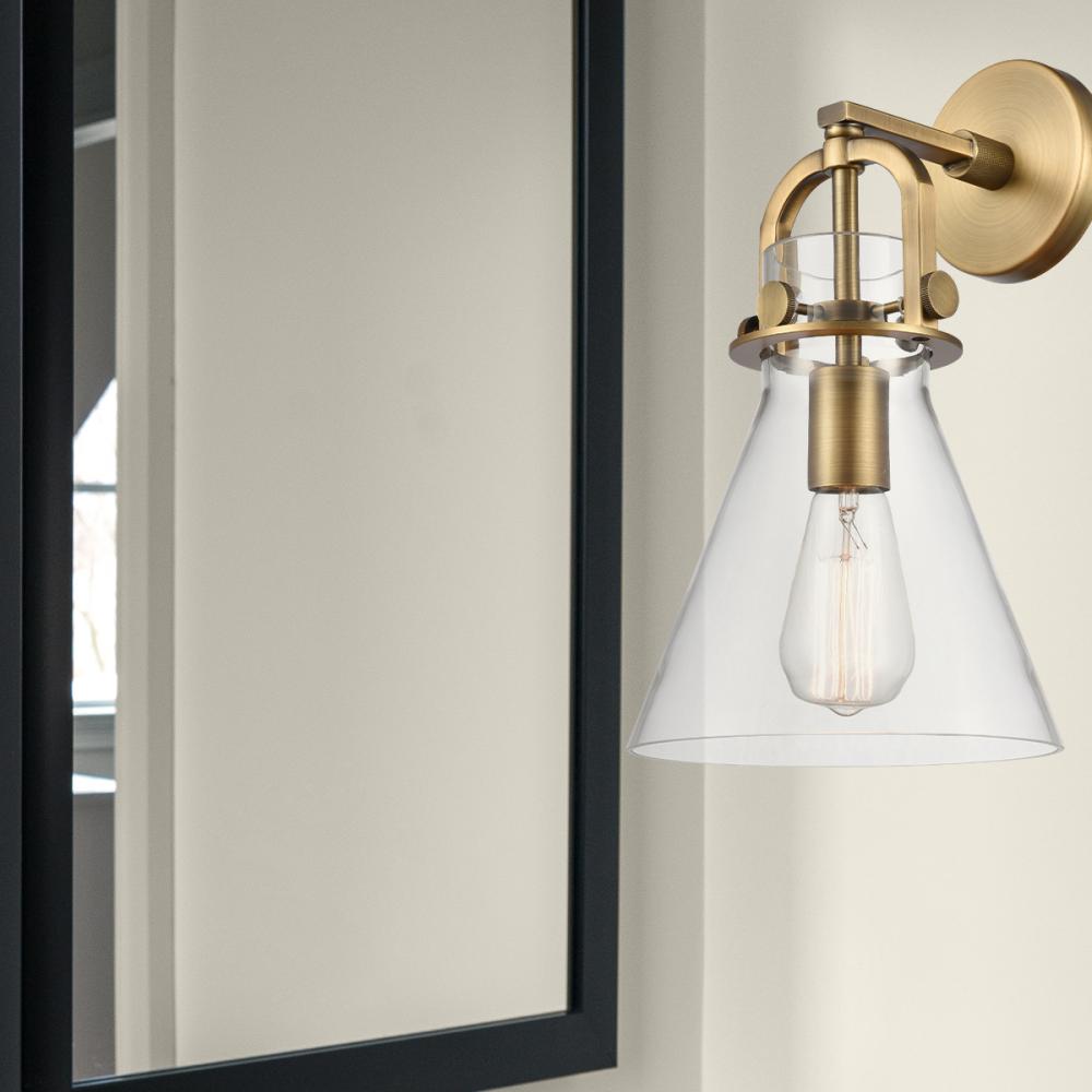 Newton Cone - 1 Light - 8 inch - Brushed Brass - Clear Shade - Sconce